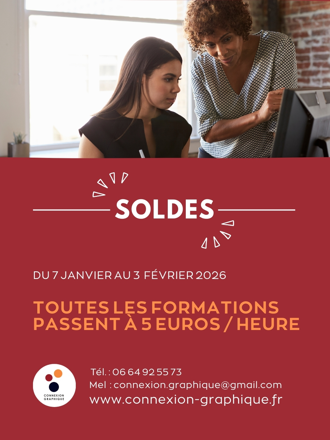 C’est simple ! Il suffit de réserver vos formations directement par mail à connexion.graphique@gmail.com (l’offre se fera automatiquement)